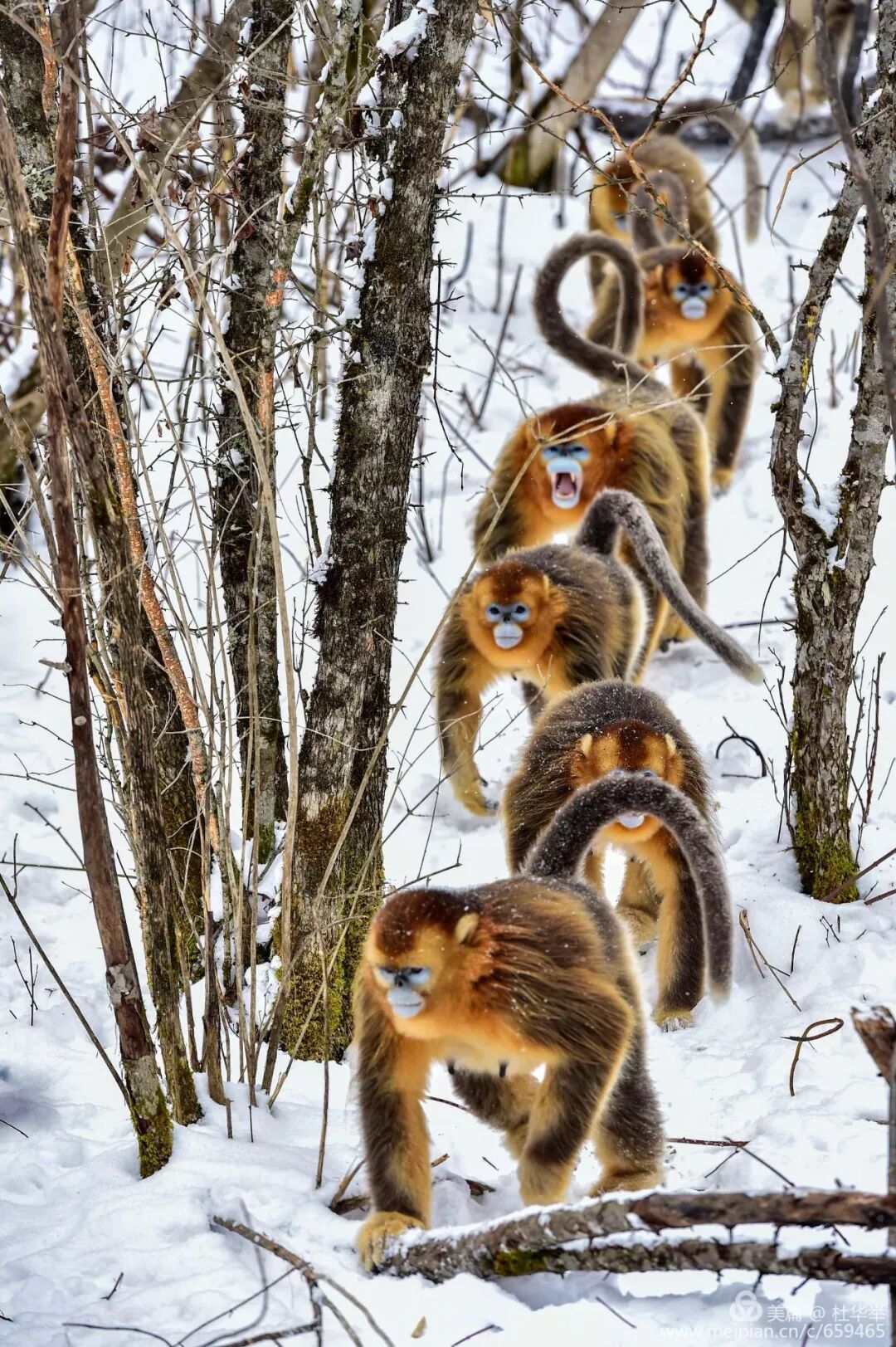 雪中的神农架金丝猴 摄影:新华社 杜华举