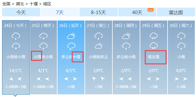 鄂西北半高山地区,需注意雨雪天气对交通的不利影响,做好行车安全措施,小心慢行,同时,未来三天气温下降明显,大家记得及时添加衣物,谨防感冒。