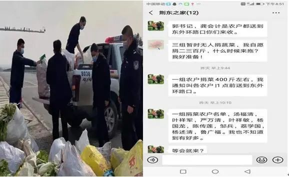 各村通过电话、微信等方式收集农户物资需求信息,列出清单,需要在城中购买的,集中报送至专班人员,专班人员根据清单集中采购后送达至各村卡口,由村干部再送至农户。与此同时,荆东村、荣星村、革集村等村村民了解到城区部分单位蔬菜供应紧张,自发组织捐赠蔬菜。村干部主动对接,工作专班负责调集,满载村民爱心的蔬菜陆续送达荆门中医医院、交警大队及城区各社区。