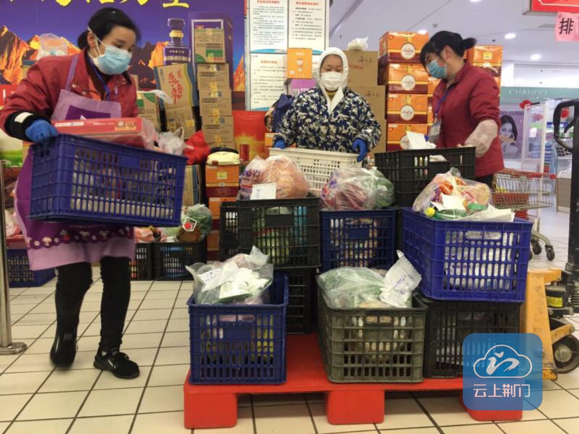 东方百货沙洋三眼桥店等商超就更加忙碌了。下午3点,工作人员还在进行打包配送。负责人彭艳华介绍说:“我们每天有200多单,总金额2万元左右。超市以小区为单位,当天下订单,次日送。早上上班的时候,我们会安排10个人捡单、付款、装货、编号。然后,把东西分送到小区。”
