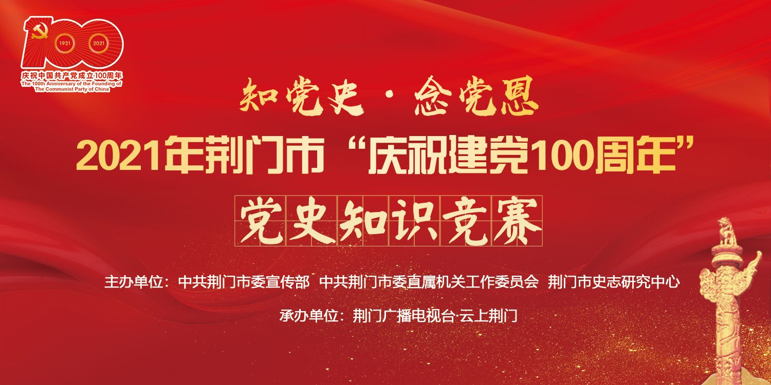 为推动党史学习教育工作走深走实,6月1日至30日,中共荆门市委宣传部、中共荆门市委直属机关工作委员会、荆门市史志研究中心、荆门广播电视台联合推出“知党史·念党恩”2021年荆门市“庆祝建党100周年”党史知识竞赛。