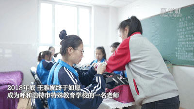 王雅妮,是内蒙古自治区呼和浩特市特殊教育学校的教师。2014年春节前夕,正在内蒙古考察的习近平总书记来到呼和浩特市儿童福利院。见到小雅妮,总书记笑容可掬地向她学手语,鼓励她好好学习、学业有成。