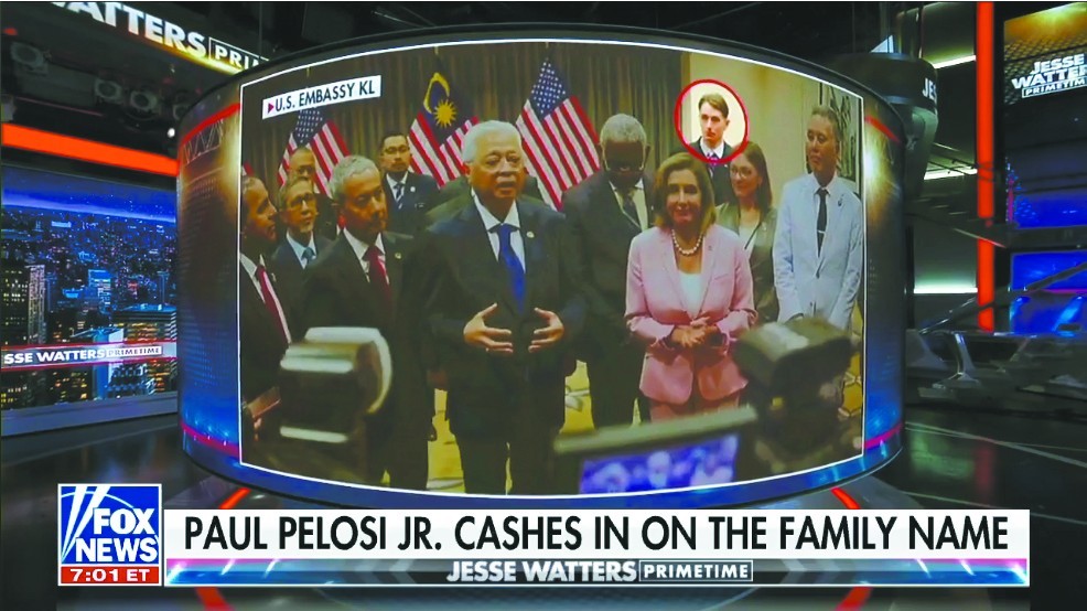 佩洛西所说的“不是所有人的配偶都能来”,被认为指的是她丈夫保罗·佩洛西当时正因酒驾丑闻需要出庭受审。“El American”新闻网称,保罗曾多次被指利用妻子作为众议院议长所获得的特权信息在股市中策划有利可图的交易。而小保罗似乎在追随他父亲的脚步。有美媒质疑,小保罗是否在亚洲之行中通过兜售影响力来为家族捞钱?