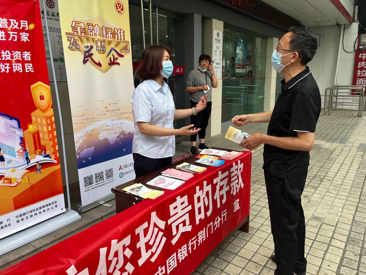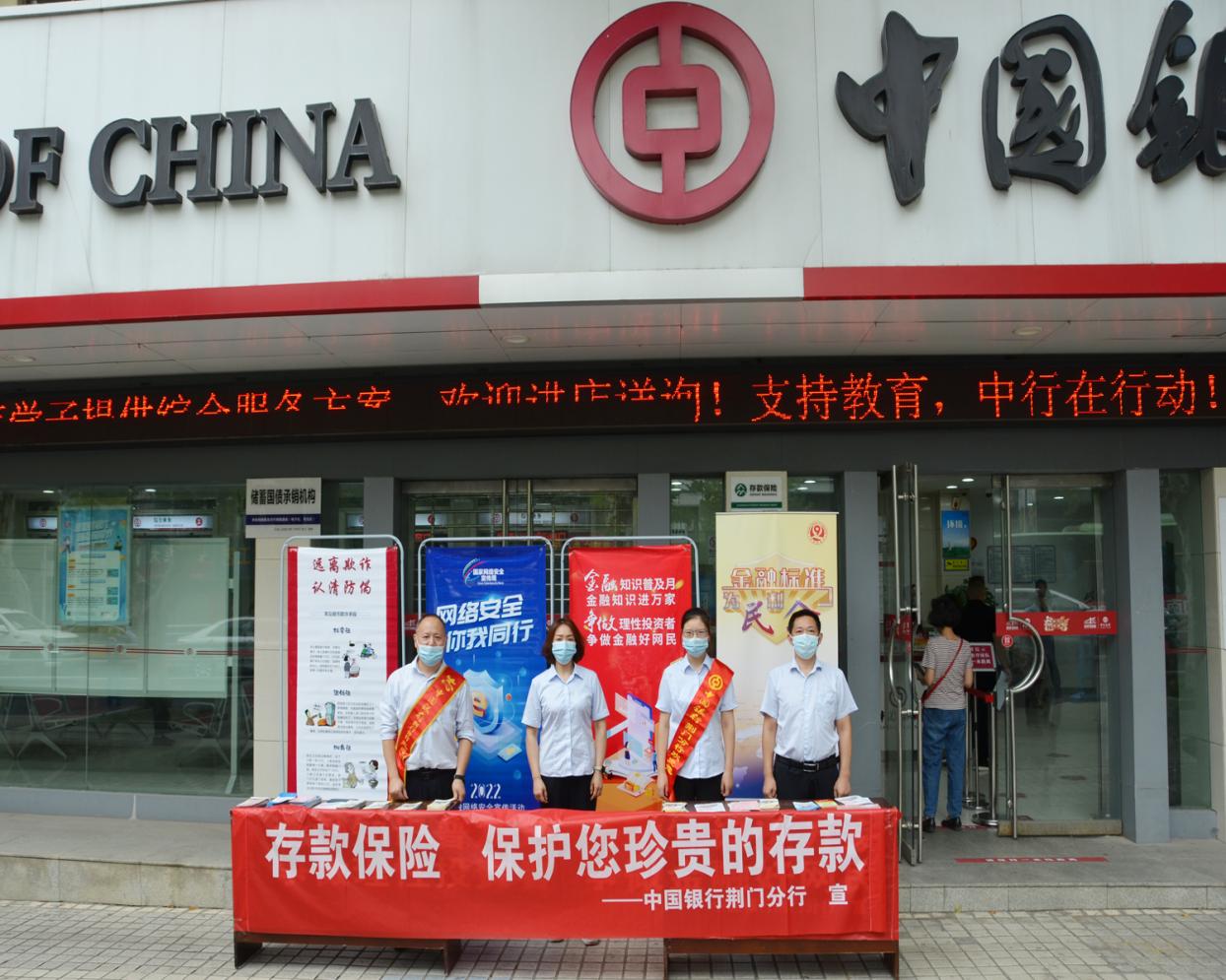9月10日,中行荆门分行在人流量较大的海慧路18号东宝支行门前开展《存款保险条例》宣传,向广大居民介绍相关内容,提高公众对存款保险的知晓度、认知度、理解度。