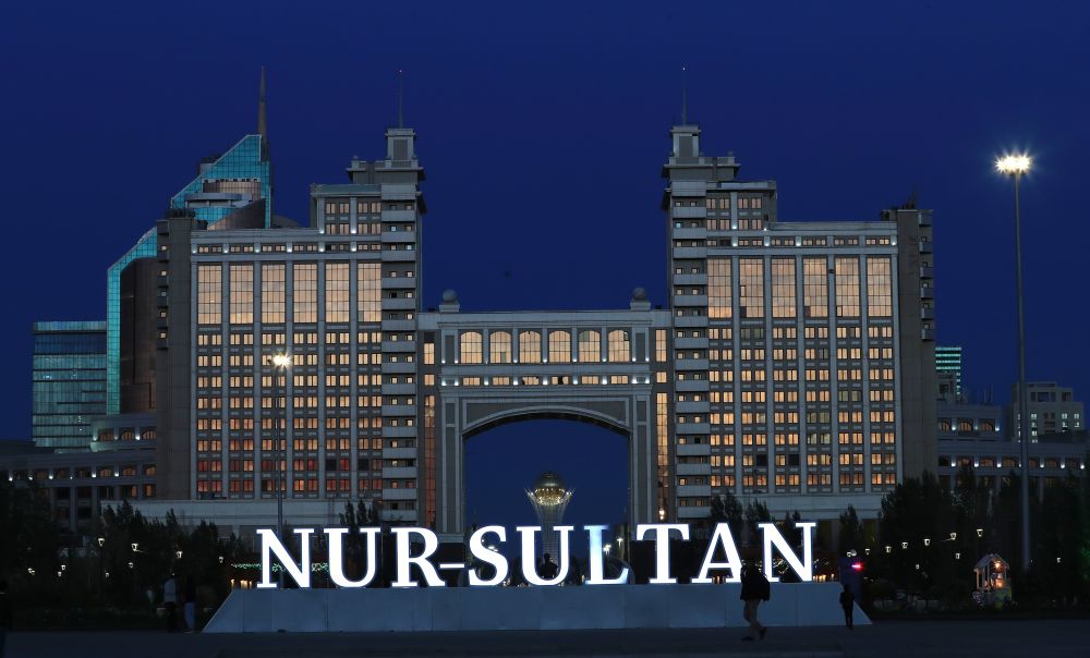 哈萨克斯坦首都努尔苏丹的城市夜景。新华社记者 鲁金博 摄