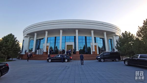 15日上午,习主席乘车抵达撒马尔罕国际会议中心。这座建筑是今年4月新落成的。接待习主席来访,是它首次用作国事活动举办场地。