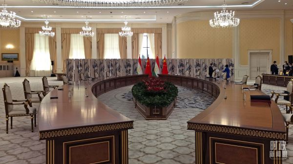 △中国、塔吉克斯坦两国元首会见在这里举行。(总台央视记者马超拍摄)