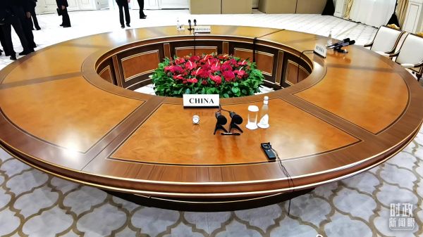 △这是中俄蒙三国元首举行会晤的大圆桌。(总台央视记者杨波拍摄)