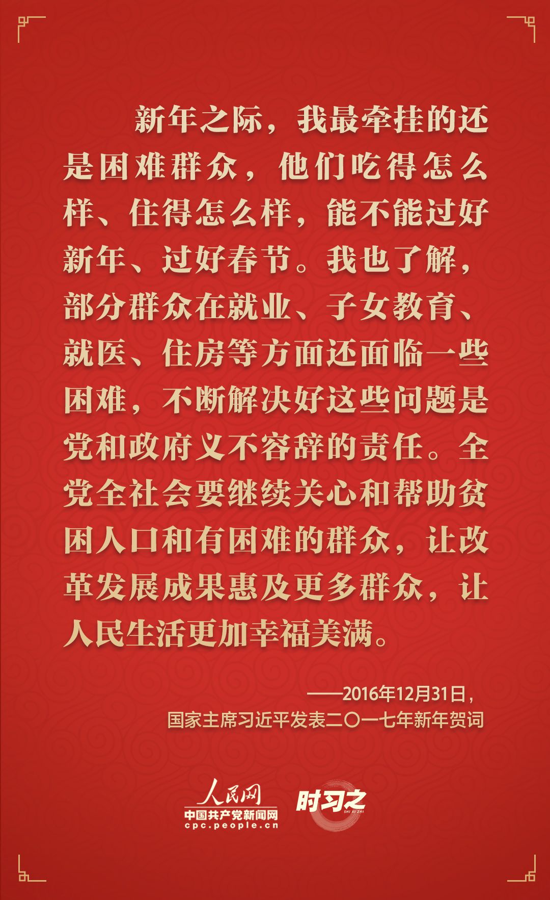 2022年12月31日晚,国家主席习近平将发表二〇二三年新年贺词。在历年的新年贺词中,习近平主席心系民生冷暖、情牵万家灯火,体现着大国领袖深厚的人民情怀。人民网·中国共产党新闻网“时习之”栏目带您一起重温习近平主席的新年贺词,感悟“人民”二字重逾千钧。
