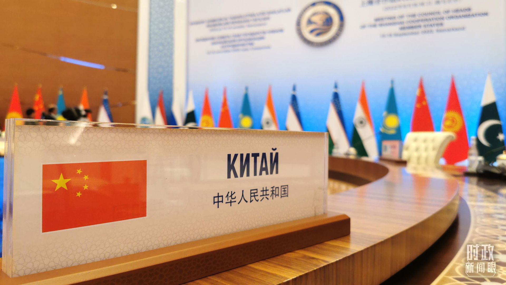 △2022年9月16日,习近平赴乌兹别克斯坦撒马尔罕出席上合峰会。这是小范围会谈现场的中方桌签。(总台央视记者黄京辉拍摄)
