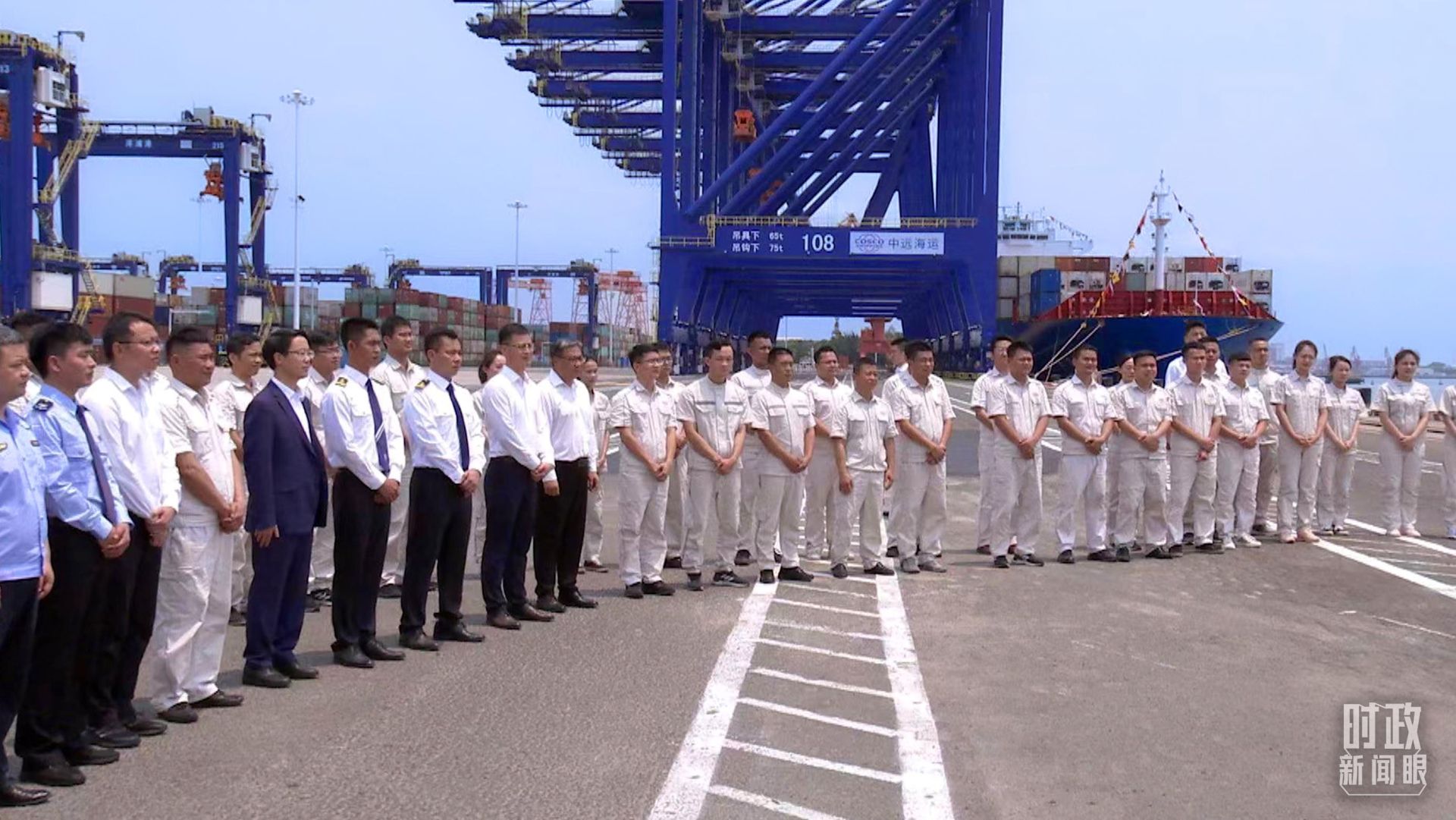 △2022年4月,习近平来到海南洋浦国际集装箱码头小铲滩港区考察。这是当天的现场作业人员、挂职干部代表等。(总台央视记者马超拍摄)