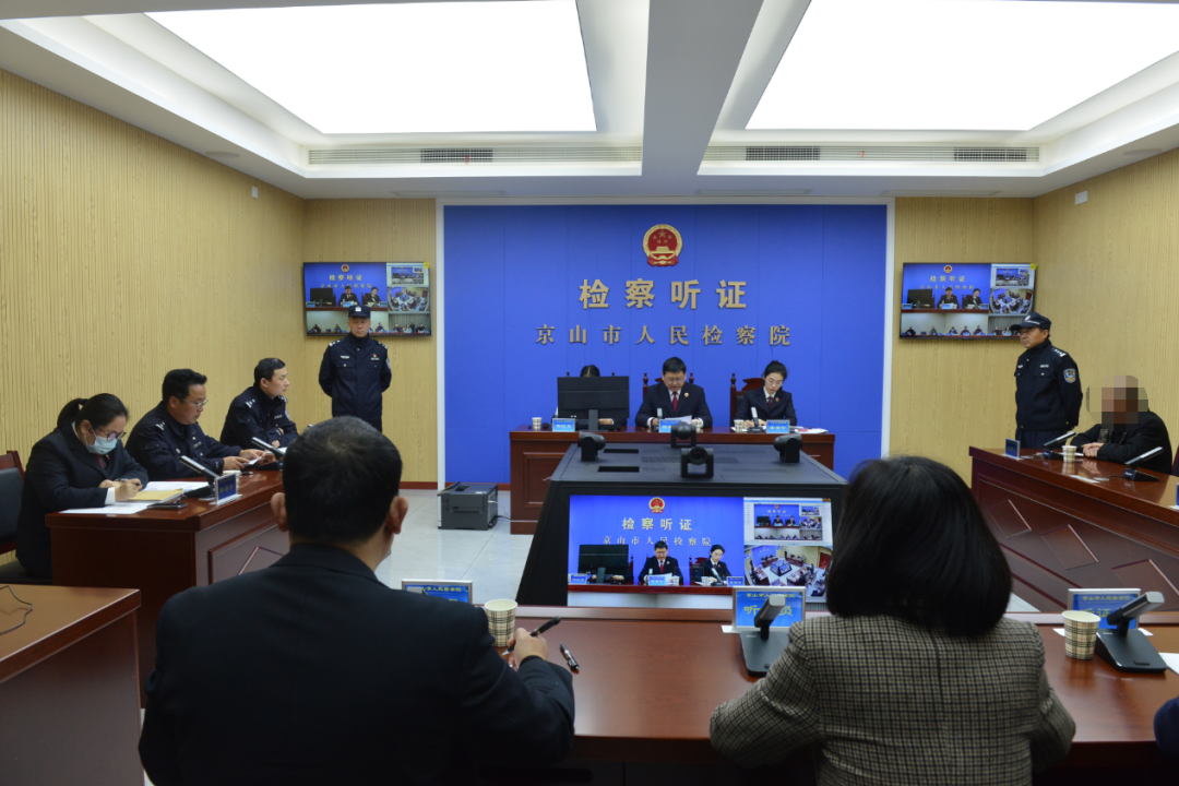 柏某某刑事申诉案公开听证会在京山市检察院举行,荆门市检察院检察委员会专职委员刘天尧一行专程赶来,主持公开听证。