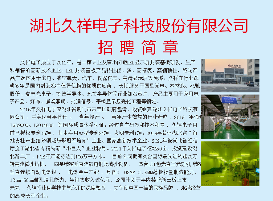 3.PQE工程师:2名,了解PCB或FPC全流程,熟悉制程工艺流程,熟悉异常品质的处理流程,熟练办公软件运用,PCB或FPC行业两年以上工作经验。