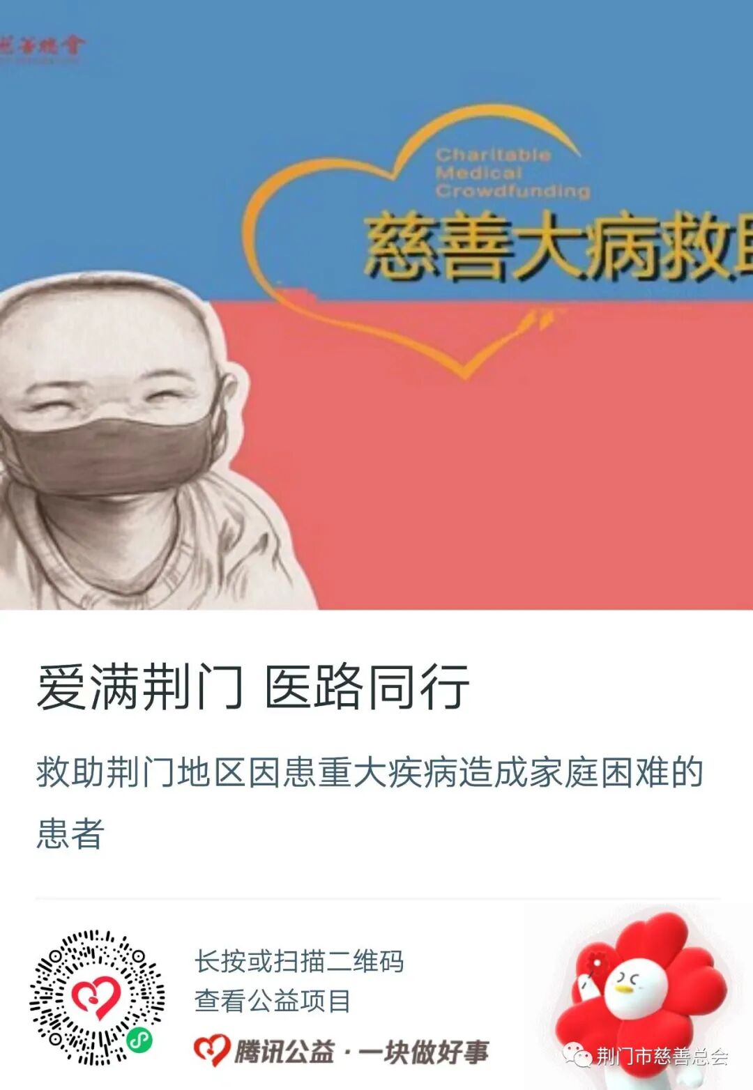 病魔无情人有情。为巩固脱贫攻坚成果,助力乡村振兴,荆门市慈善总会发起“爱满荆门 医路同行“项目,旨在帮助荆门地区因患重大疾病造成家庭困难的患者减轻医疗负担,为困难患者扫清前行之路的障碍。