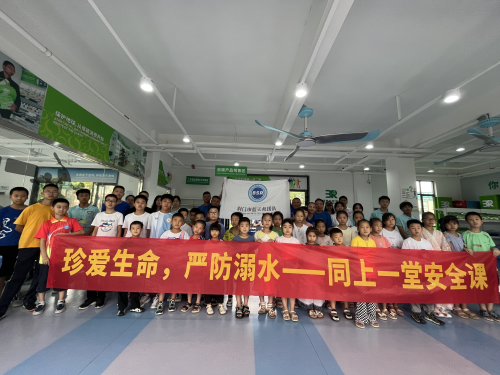 荆门市蓝天救援队通过讲解身边事例,情境演示等方式宣传防溺水相关知识,增强学生救护能力。