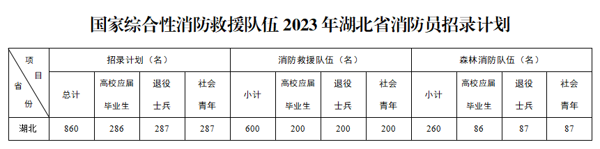 湖北省消防员招录工作办公室关于国家综合性消防救援队伍2023年面向社会招录消防员的公告