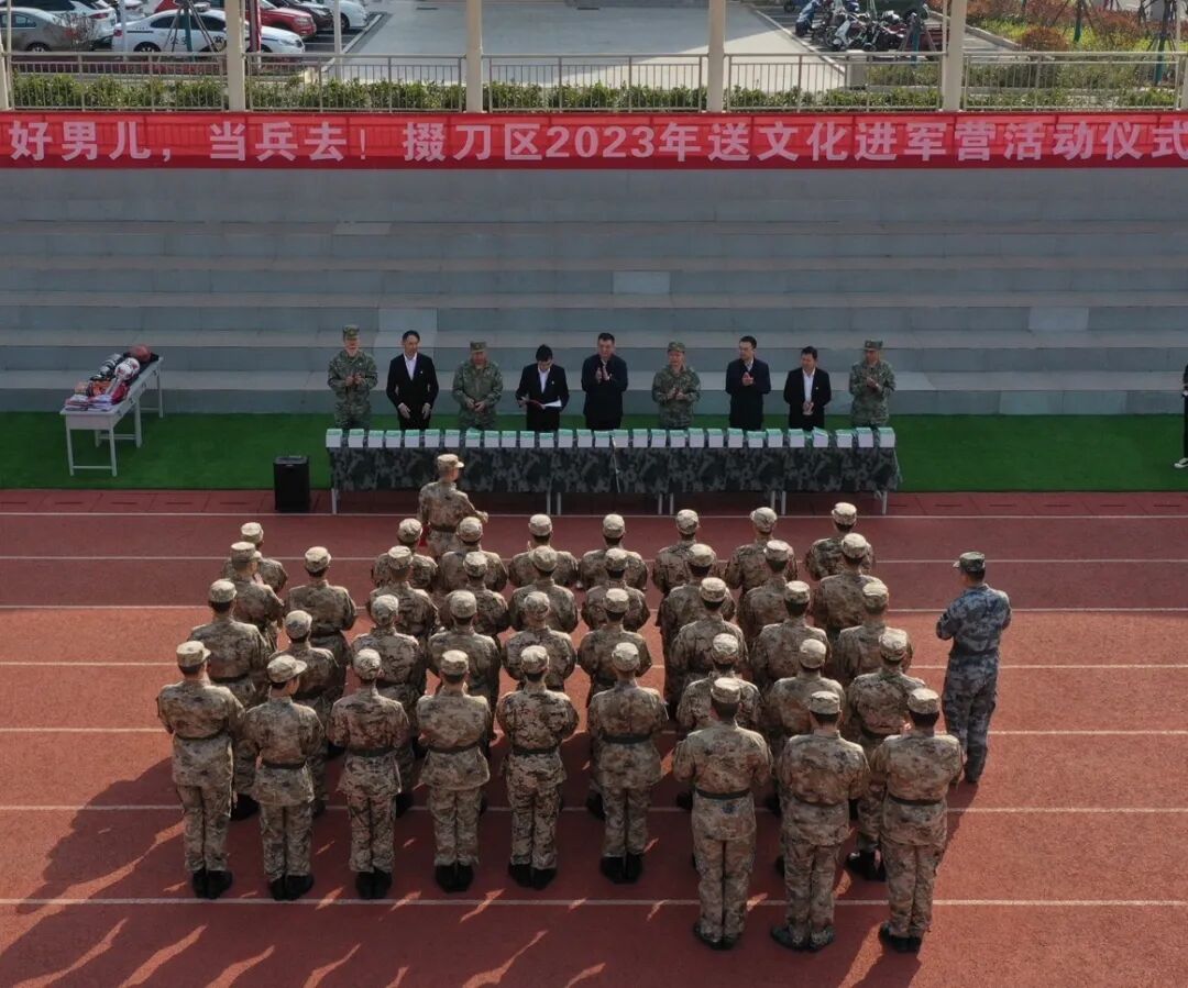 荆门高新区党工委副书记、掇刀区委副书记、区委政法委书记李鹏,荆门高新区工委委员、掇刀区委常委、区人武部政委何宝平出席活动并讲话,区政府副区长、区公安分局局长吴军主持活动。活动现场,入伍新兵们进行了匕首操汇报表演,气势虎虎生威,动作行云流水。随后,李鹏还为新兵们赠送了书籍以及体育用品等。