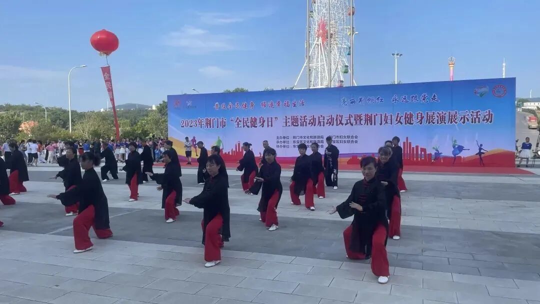 此次活动由荆门市文化和旅游局、荆门市妇女联合会主办,东宝区文化和旅游局、东宝区妇女联合会承办,东宝区妇女健身协会协办。市妇联党组书记、主席李玉泉,市文化和旅游局党组成员、副局长余作富,区委副书记、区委政法委书记梅勇出席启动仪式。启动仪式上,由区老年体育协会副主席、区妇女健身协会党支部书记樊翠兰宣讲了党的二十大精神,解读了党的二十大报告中关于高质量推动体育各领域发展、加快推进体育强国新实践等内容。在随后的全民健身展演环节,各群众体育协会的健身爱好者表演了精彩的千人共舞、手杖操、三步踩、手拍鼓、太极拳、莲响、健身操、交谊舞、广场舞,节目精彩纷呈,各具特色,动静结合,老少皆宜,充分展示了健身达人们的风采,吸引了众多市民的目光,过往市民纷纷驻足拍照留念。此次启动仪式还为现场群众提供了国民体质监测服务及体育法治宣传服务,广大健身爱好者们积极参与,这为帮助群众科学有效地进行体育锻炼和保障全民健身运动的发展起到了助推作用。据悉,8月5日—6日在东宝文体中心羽毛球馆举办的2023年东宝区第四届“金文峰杯”职工羽毛球比赛也是今年东宝区“全民健身日”主题活动之一。此次赛事,为东宝区羽毛球爱好者搭建了交流和互动的广阔平台,展示了东宝区人民健康向上的体育精神和奋发有为的优良品质。