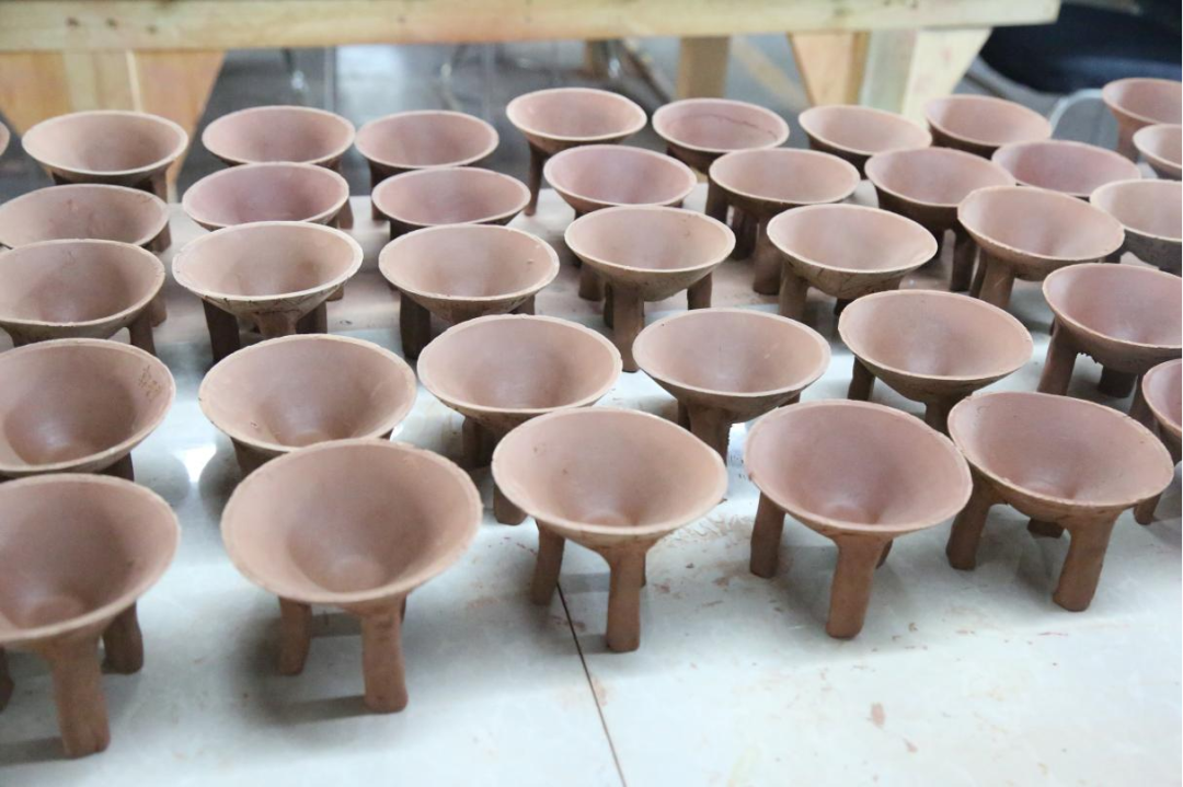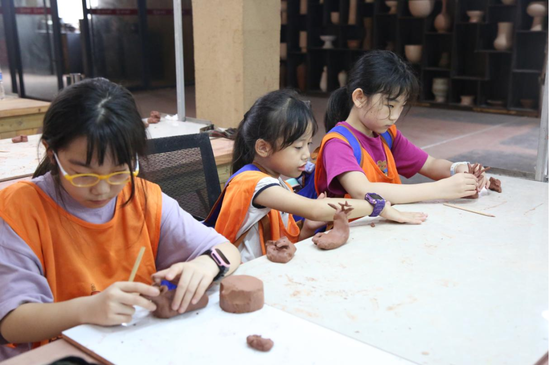 研学现场,东方陶都公司为小朋友们免费提供烧制服务,将他们制作的泥塑作品和融合屈家岭文化的陶鼎作品进行烧制,确保每个小朋友都能将自己的陶艺作品带回去,使他们学有所获。