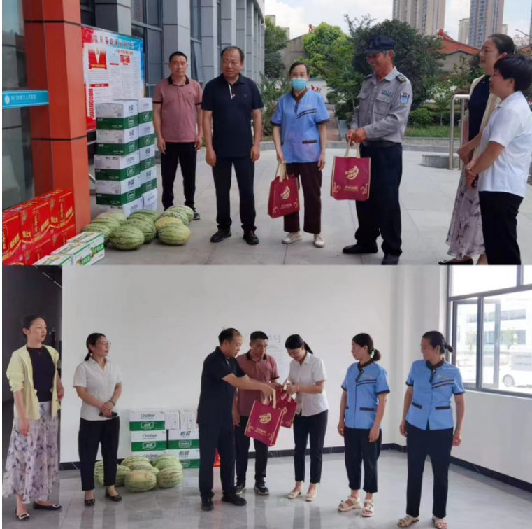 公司党委副书记、副总经理何鹏林带队前往掇刀医院、长城物业及团林福利院慰问一线职工。每到一处,何鹏林都会与相关管理人员进行交谈,了解职工工作环境和防暑降温措施,并叮嘱要备足防暑降温用品,科学安排户外作业时间,全力保障好职工安全和健康,让广大职工舒心工作、平安度夏。