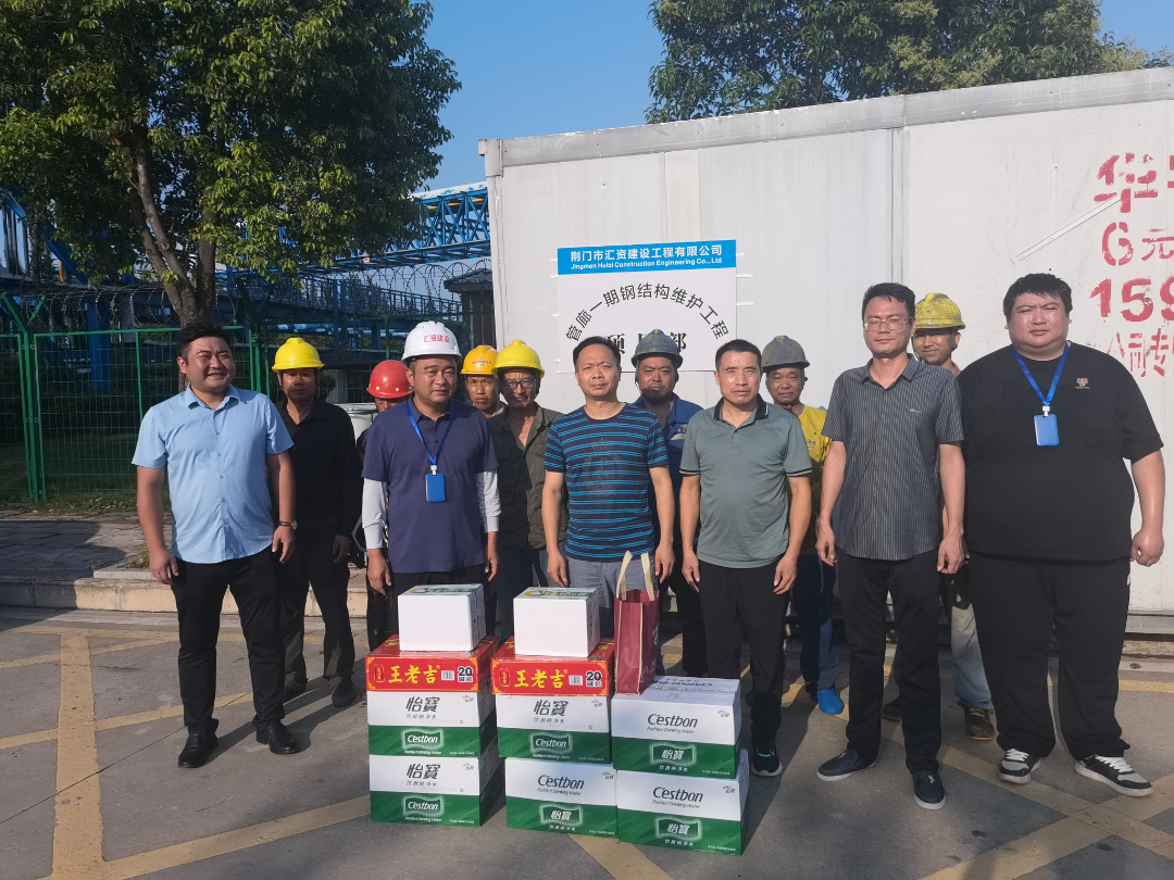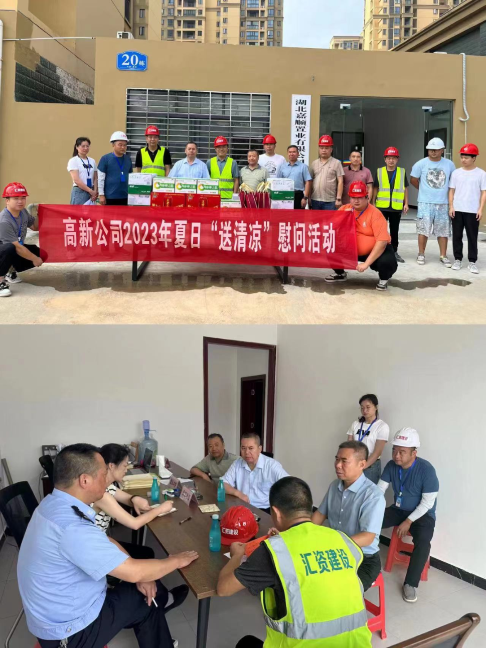 公司党委书记、董事长李华平,纪委书记、工会主席贾立俊,党委委员、副总经理游海峰一行前往掇刀区城南新区老旧小区改造项目,看望慰问奋斗在高温作业一线的职工。在项目现场,李华平实地查看项目建设和安全生产落实情况,对他们顶烈日、冒酷暑,坚守岗位、无私奉献的辛勤付出表示亲切的慰问和由衷的敬意,嘱咐他们在做好本职工作的同时,要注意安全防护和防暑降温,并督促项目部要合理调整作业时间,科学安排工作量,切实做好高温天气下职工的防暑降温工作,在保持高效生产的同时,主动关心职工诉求,切实维护职工权益,确保安全生产形势平稳有序。