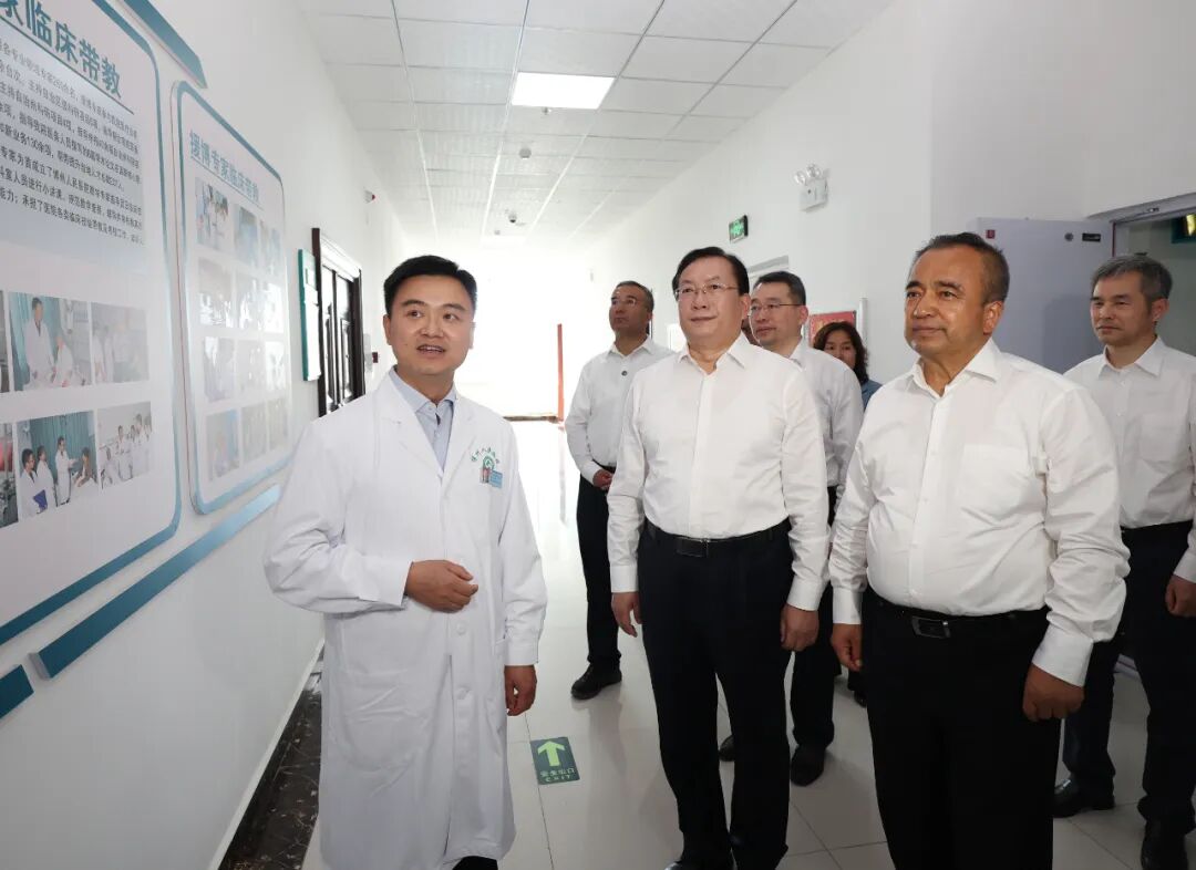 “看病找湖北医生,读书找湖北老师”,在博州和兵团第五师双河市当地群众中传为美谈。省代表团先后来到博州人民医院、黄冈中学第五师分校,了解湖北医疗、教育“组团式”援疆的相关做法。王忠林衷心感谢各位援疆医生和教师作出的无私奉献,勉励他们继续秉持“一家人、一家亲”理念,充分发挥湖北医疗教育资源优势,提供更高质量服务,切实保障群众健康,培育更多高素质人才。