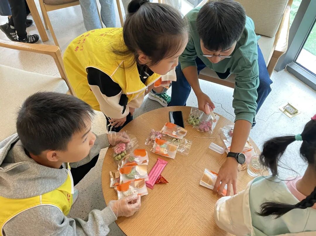 月饼出炉后,小朋友们在工作人员的帮助下,将做好的月饼封口打包。