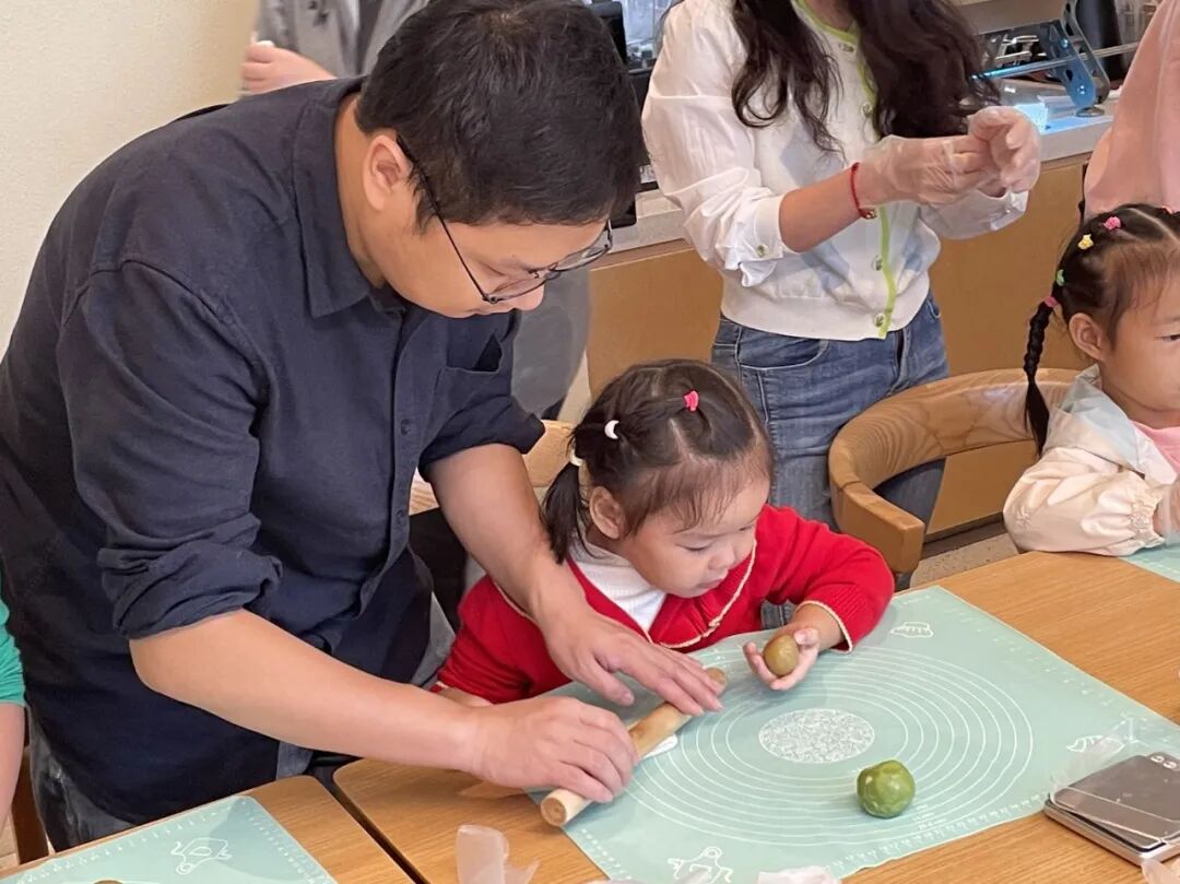 学习完毕后,家长带着小朋友们开始制作月饼。
