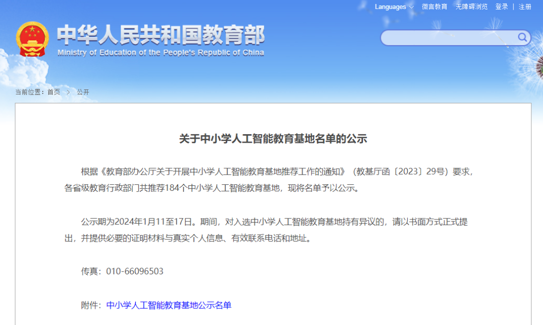 1月11日,教育部公示中小学人工智能教育基地名单,湖北6所中小学入选,其中荆门1所。公示期为2024年1月11至17日。一起来看公示名单——