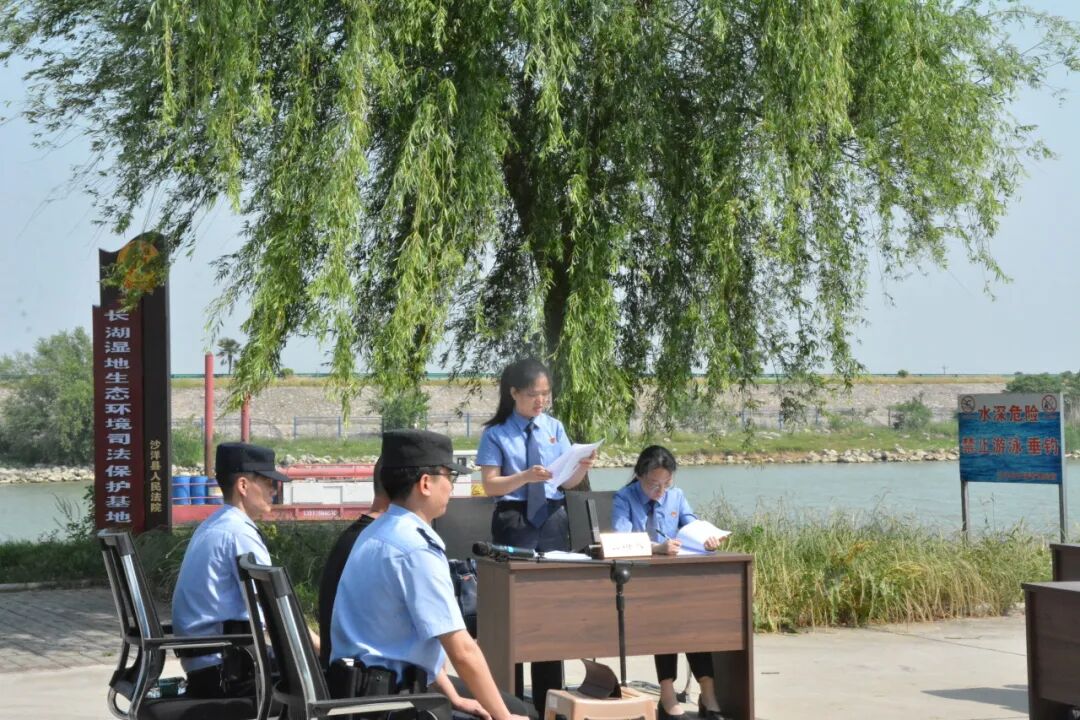 缓刑考验期内再犯新罪,等待他的将是……5月15日,由荆门市沙洋县检察院提起刑事附带民事公益诉讼的胡某某非法捕捞水产品案,在长湖湿地生态环境司法保护基地公开庭审。部分县人大代表、政协委员、人民监督员、“益心为公”志愿者、荆门市检察机关长湖流域综合治理交叉巡回检察组以及村民代表等60余人受邀旁听庭审。