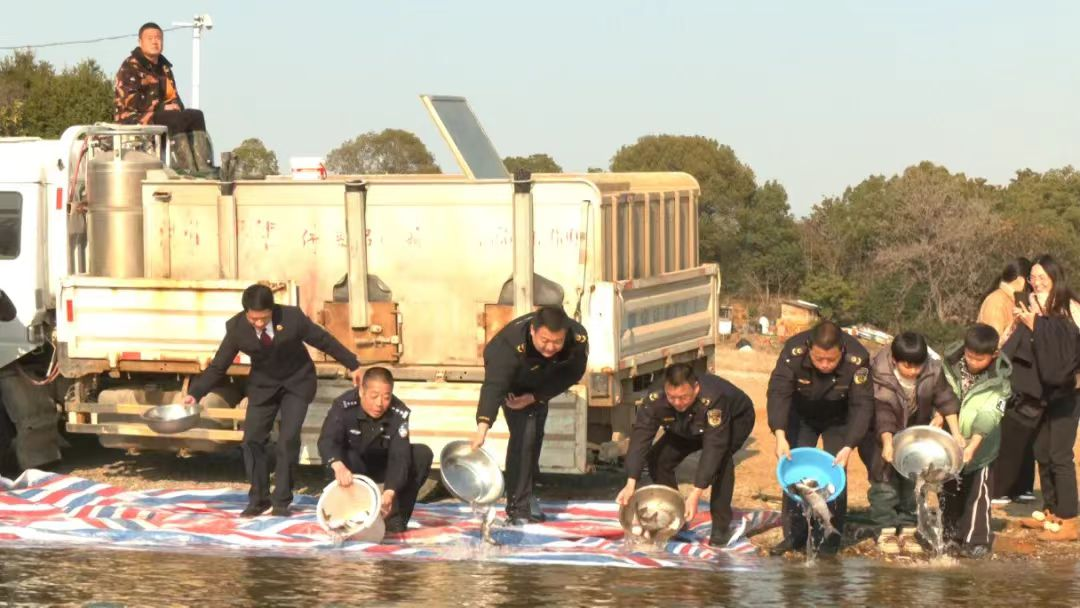2024年1月,京山市检察院、公安局、农业农村局等单位工作人员,联合京山市惠亭水库开展增殖放流活动。在现场人大代表、政协委员、人民监督员、“益心为公”志愿者及周边居民的见证下,1600余斤近万尾鱼苗被投放至惠亭水库,用以修复因非法捕捞受损的水生生物资源以及珍稀鸟类的食物链。
