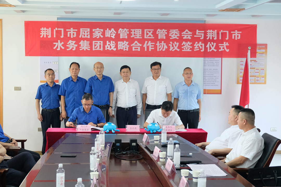 7月3日,荆门屈家岭管理区管委会与荆门水务集团有限公司签约战略合作协议,荆门屈家岭城乡水务投资有限公司挂牌成立。屈家岭管理区管委会、区财政(国资)局、区住建局、区经发局、区农水局主要负责人出席,与荆门水务集团、屈家岭城乡水务公司领导班子和职工代表共同见证了这一历史时刻。