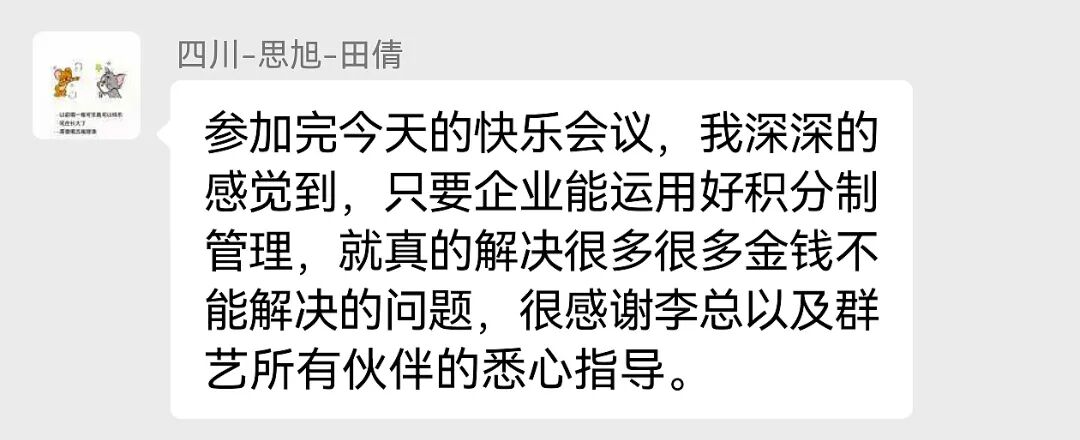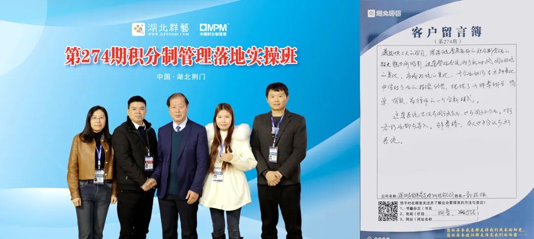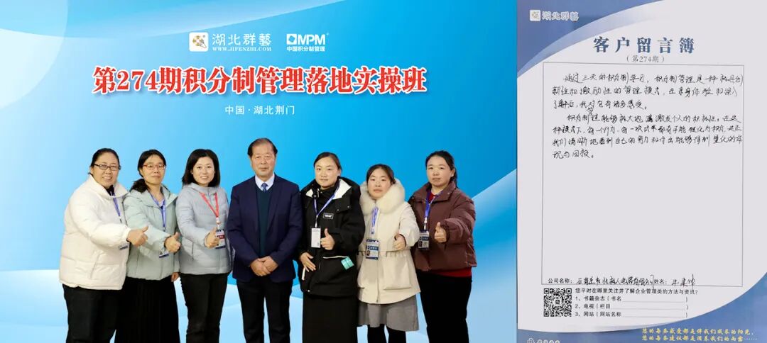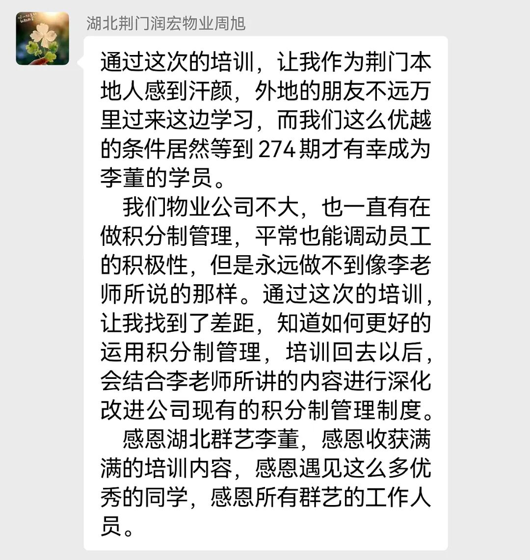 小编全程参与了本期实操班,感受颇多,体会到老总们对能够落地的管理方法的迫切需求,以及学了积分制管理后如获至宝的心理感受。真心祝愿各位企业家回到企业后能快速地将积分制管理落地,湖北群艺也将为各位学员提供后续支持,帮助企业家解决管理难题,把企业做大做强!