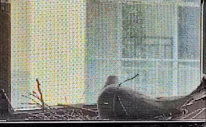 原来,一只成年斑鸠在许女士家卫生间半开的窗户处,用枯枝野草筑了一个窝,正一动不动地趴在窝中孵蛋。