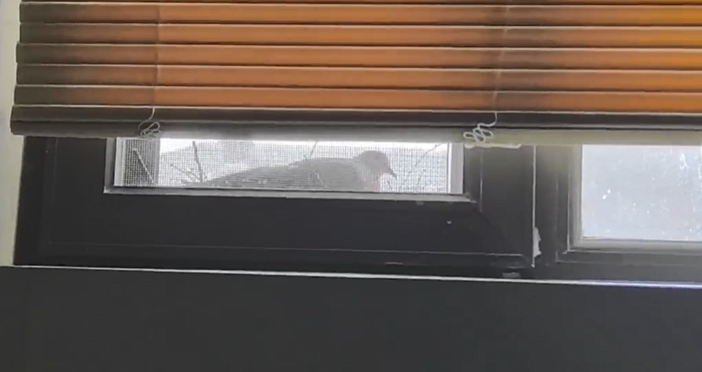 一只斑鸠正在许女士家卫生间窗户处孵蛋