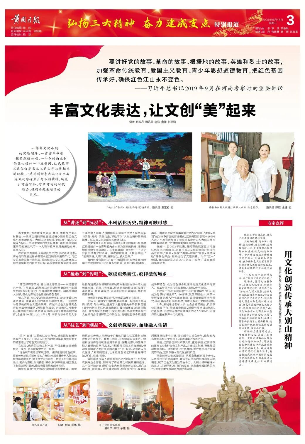 一部部文化小剧的沉浸演绎、一首首革命歌谣的深情传唱、一个个时尚文创的匠心设计……在黄冈,红色故事不再仅仅是书本上的文字与展柜里的旧物,一系列创新表达正让大别山深处的峥嵘岁月与不朽精神,焕发出可感可知、可亲可近的时代魅力,吸引着越来越多的目光。