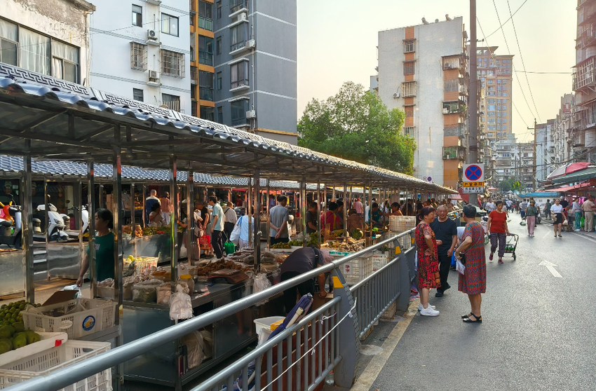 作为东山大道339号旁连接上万居民出行的“咽喉”,这里自发形成的马路市场,承载着周边居民“灶台边的需求”。百余个流动摊点,蔬果肉蛋一应俱全,方便了生活。