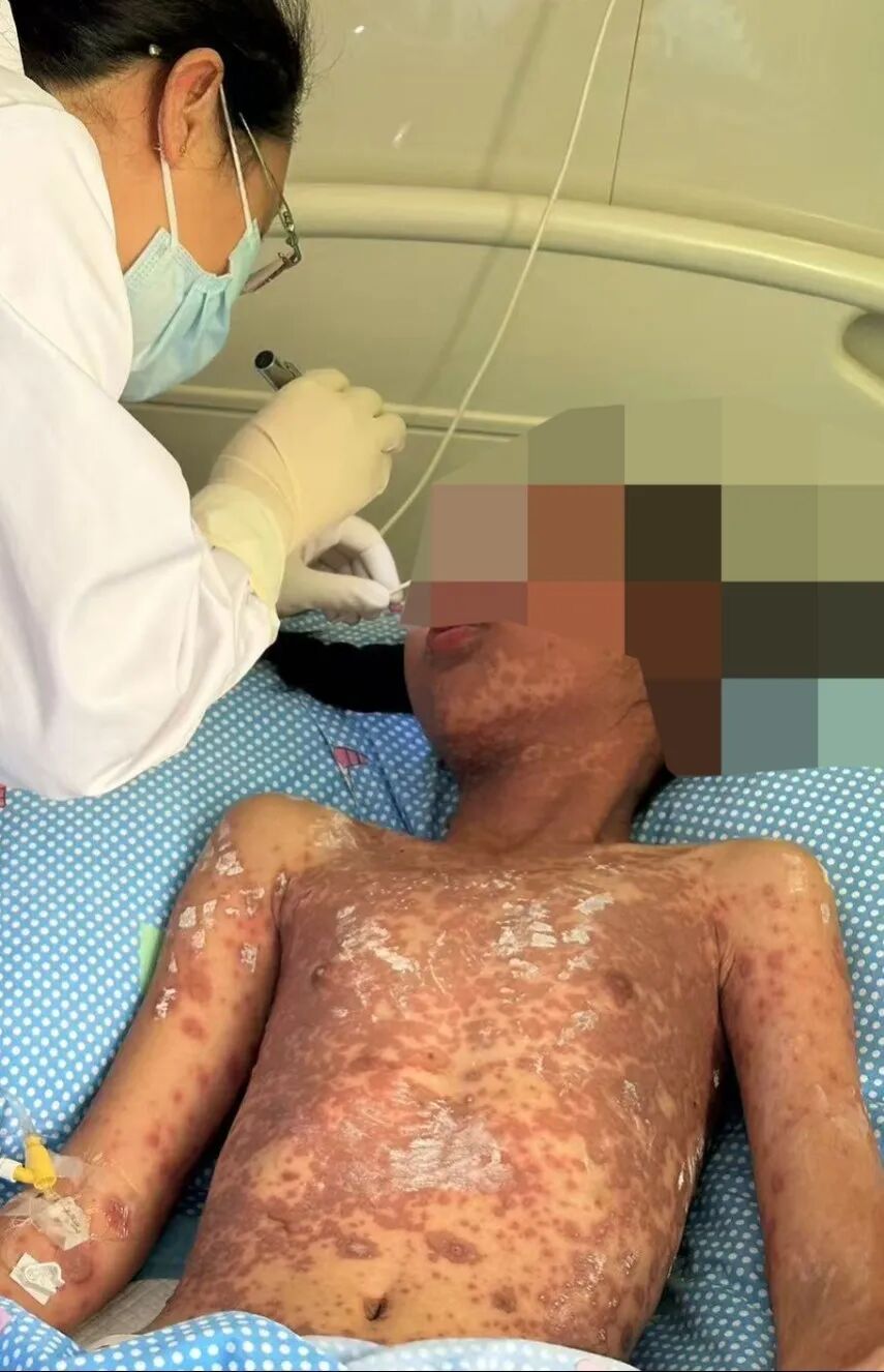 患者皮肤和黏膜(如口腔、眼睛等)会大面积坏死、松解、剥脱,就像被严重烫伤一样,经历“全身换皮”,极易继发严重感染,水、电解质紊乱及多器官功能衰竭,救治难度极大,对医疗和护理提出了近乎严苛的要求。