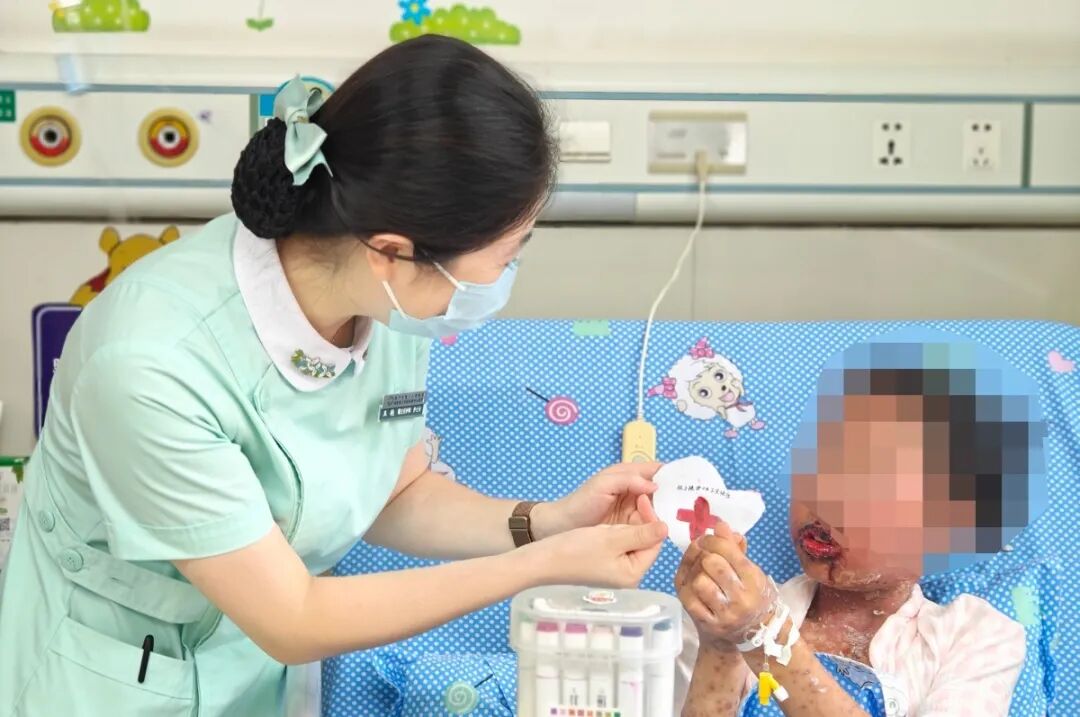 儿科一病区护士长王艳带领的护理团队提出多学科会诊申请,护理部牵头组织中医皮肤科、眼科、ICU、消化内科、营养科、整形烧伤▪手足外科、临床心理科等多学科进行护理会诊,凭借丰富的临床经验与专业知识,根据皮疹、破溃愈合不同阶段,制订了“医护一体化防控策略”——启用单间病房、严格执行空气及物表消毒,同时组建以儿科团队为核心的多学科护理小组,确保高频次护理措施精准、专业。