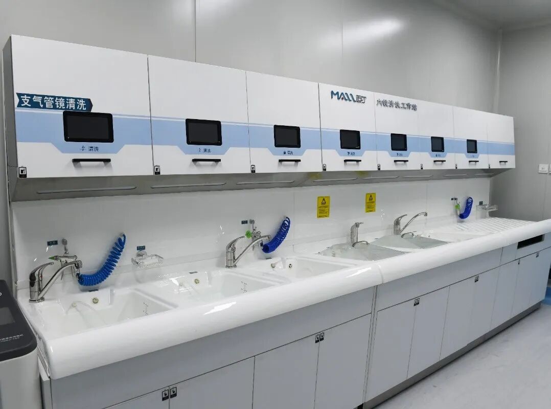 ▲最先进的内镜清洗系统(迈尔全自动内镜清洗工作站)