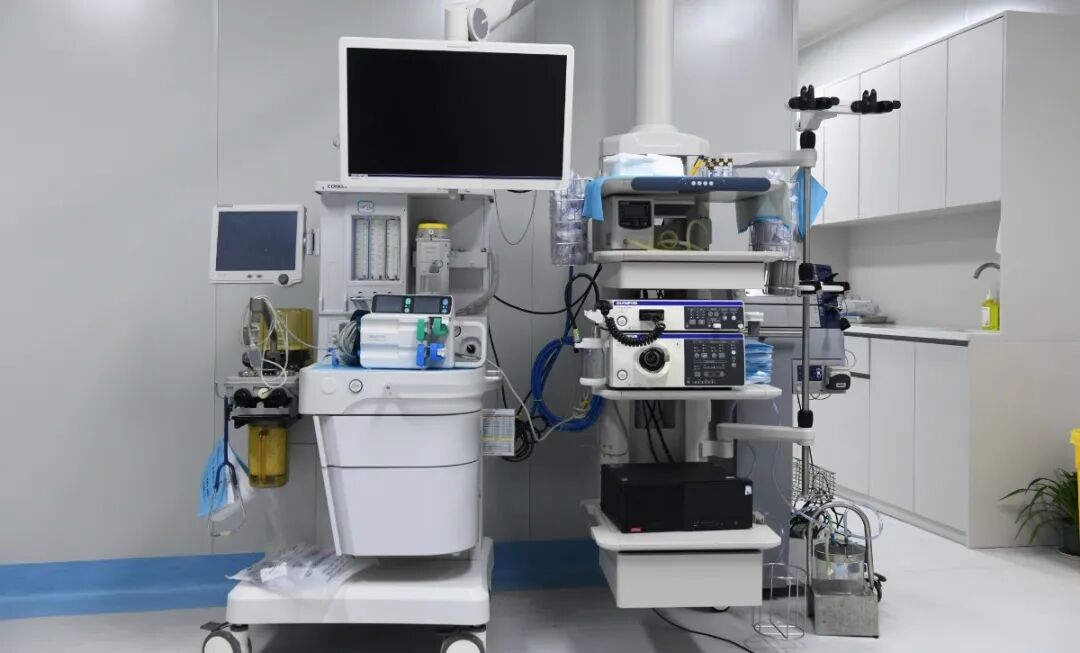 配有高频电治疗仪,氩气刀治疗仪以及各种内镜附件,以及内镜洗消中心及全自动洗消机2套。