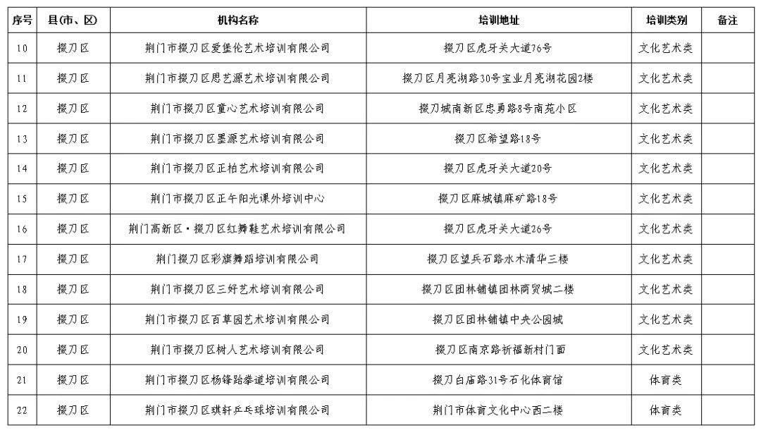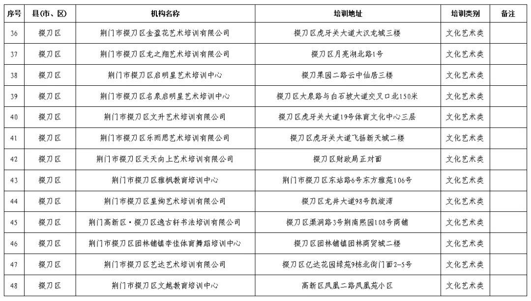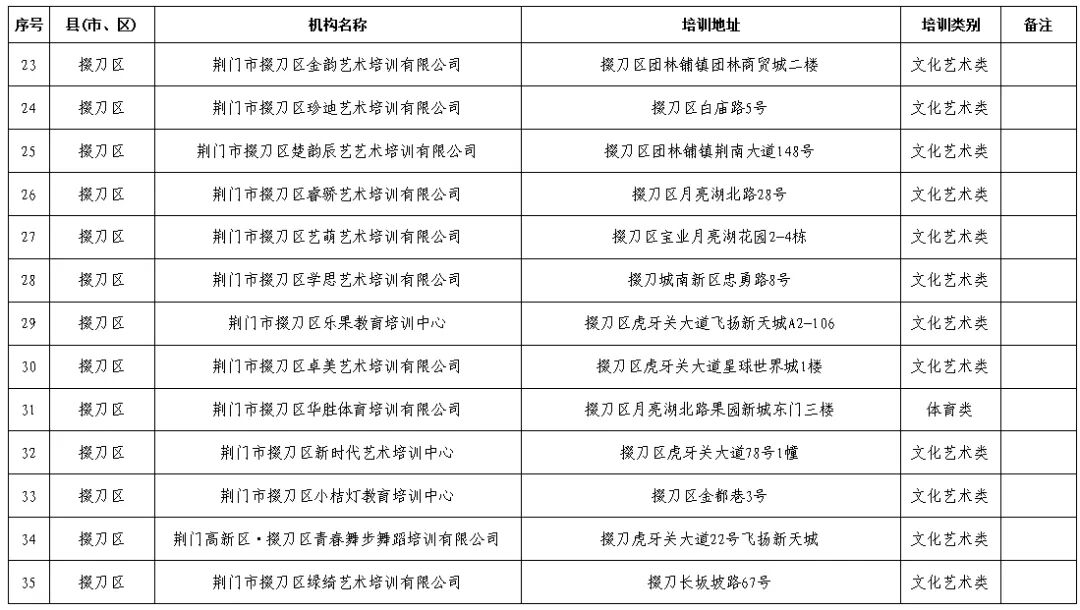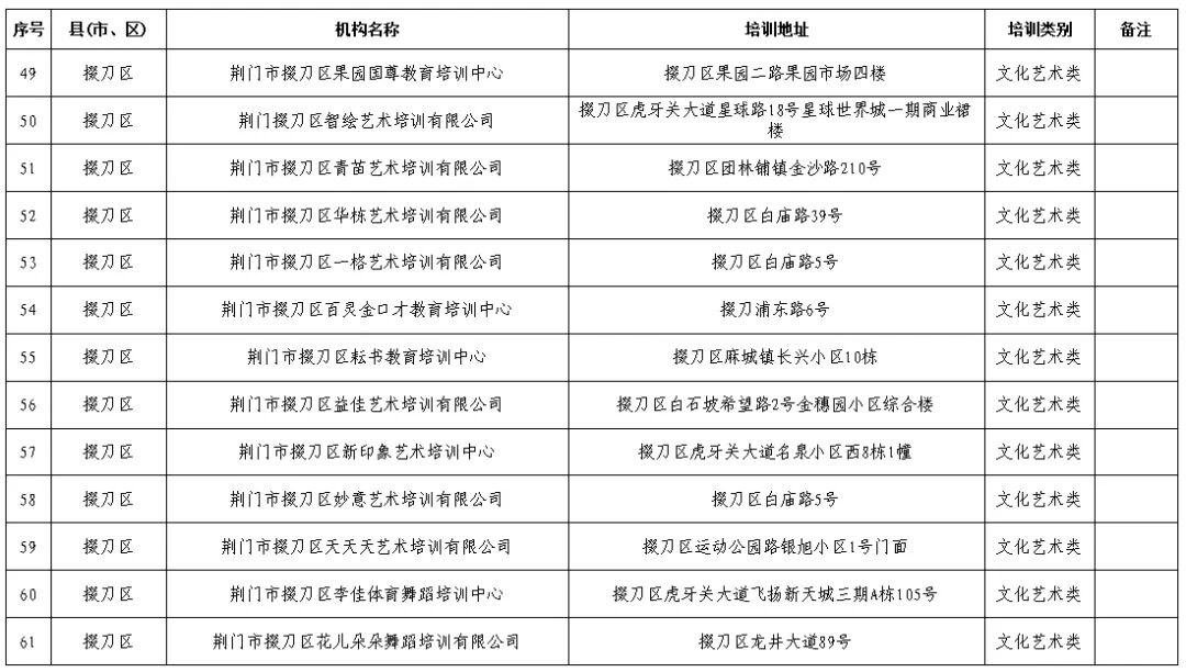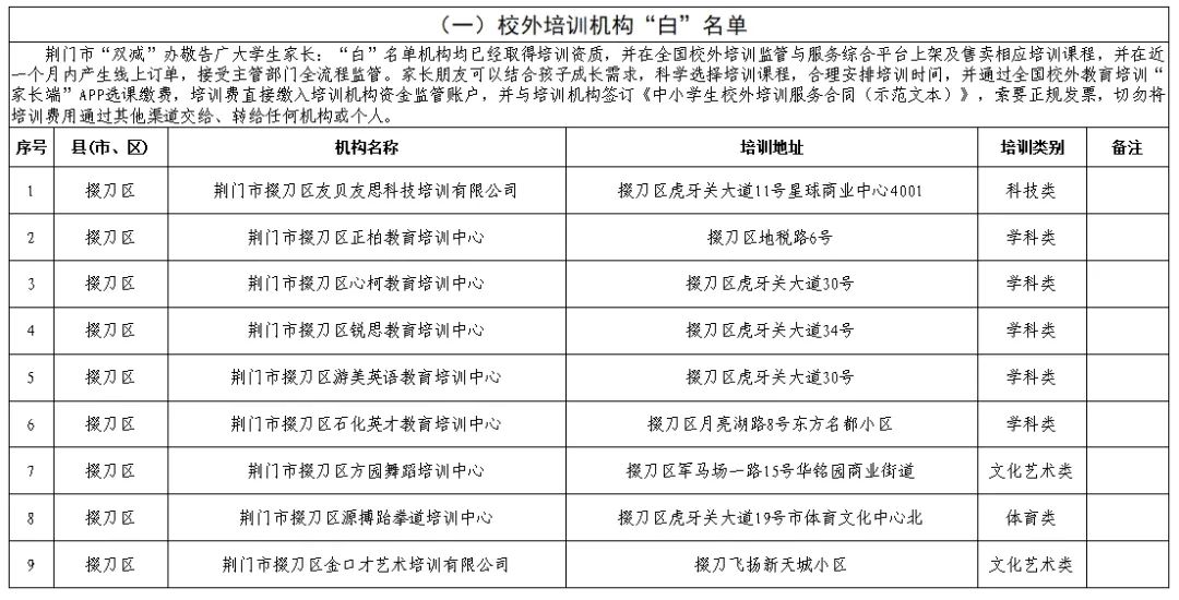 荆门市掇刀区校外培训机构“白”名单