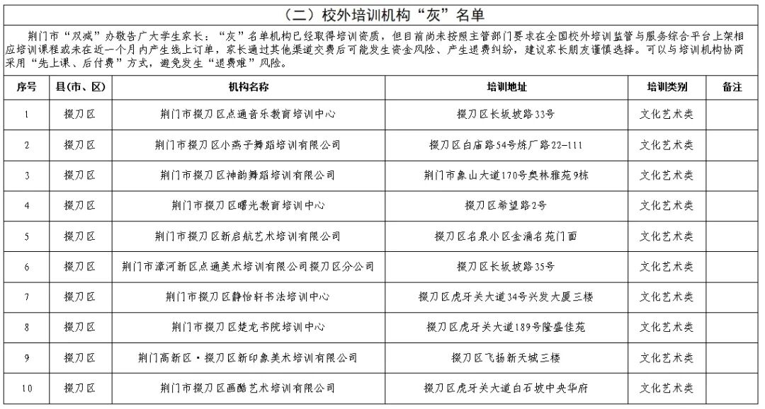 荆门市掇刀区校外培训机构“灰”名单