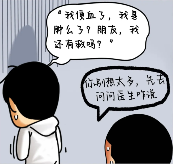 肿瘤:便血为暗红色,且与粪便混合在一起,与肠癌极其相关。