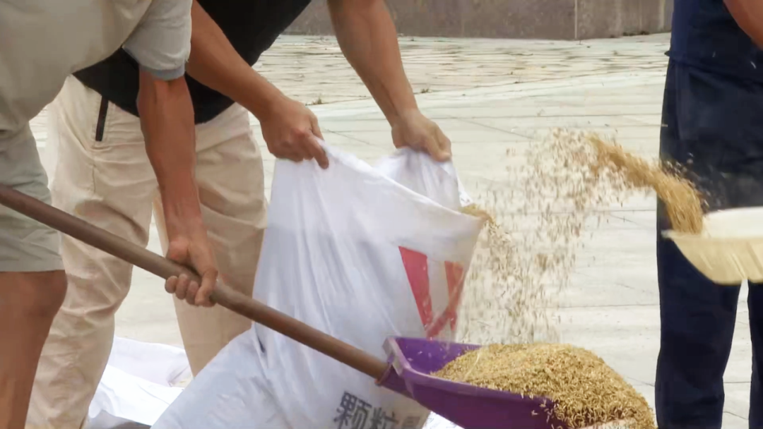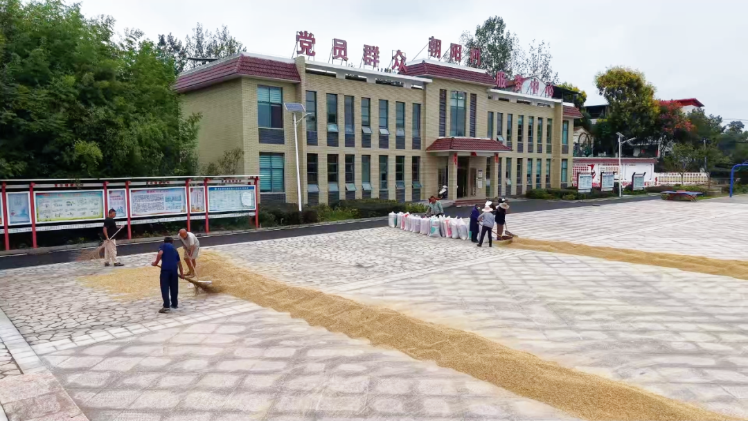 秋分时节,抢收正忙。在朝阳村村委会门口的活动中心广场,种粮大户李其海正带着村民翻晒稻谷,晒干的粮食随即运进仓库,整个流程顺畅又高效。