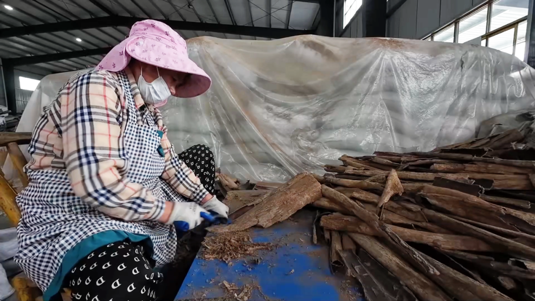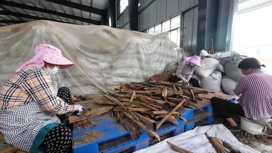 另一边的中药材加工车间里,工人们正仔细分拣艾草、夏枯球等药材——曾经不起眼的“苦药材”,如今成了村民增收的“甜产业”。