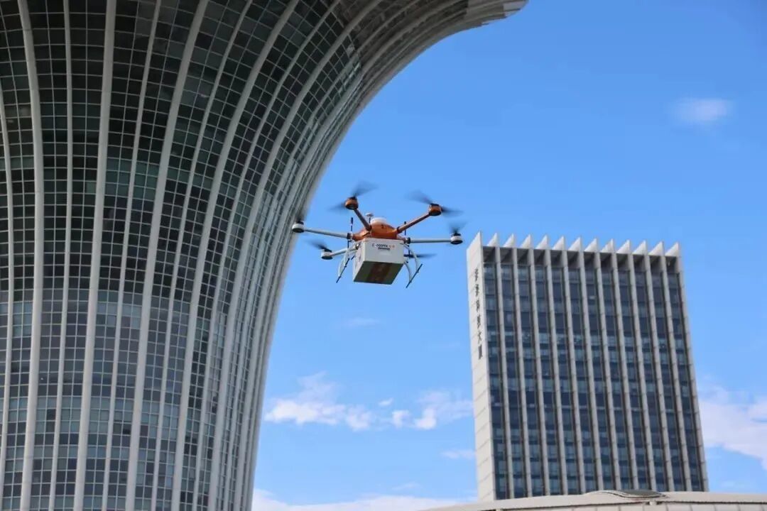“电鹰速递”试飞。这是由湖北电鹰科技有限公司研发生产的电鹰EHM-1600无人机,主要用于物流配送和高空照明。企业供图