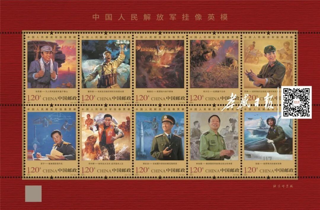 《中国人民解放军挂像英模》纪念邮票套票版。全媒体记者吴垠 摄