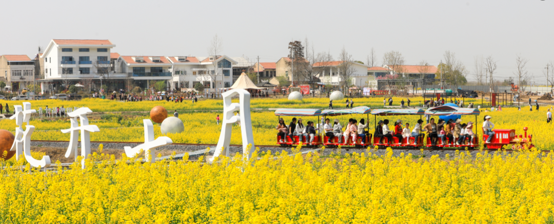 游客乘坐稻田小火车欣赏美景。特约记者彭双明 摄