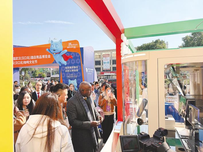 湖北日报讯 (记者杨文漪、实习生屈宗辰、通讯员黄宣、赵燕)11月20日,2025武汉(汉口北)商品交易会(简称“汉交会”)在黄陂区拉开帷幕。在汉交会首次引入的“药食同源”展区,金捷成咖啡展位前围满参观的市民游客。这种将东方养生智慧融入西方咖啡的创新饮品,不仅受到年轻消费者追捧,更吸引了众多国际采购商的关注。